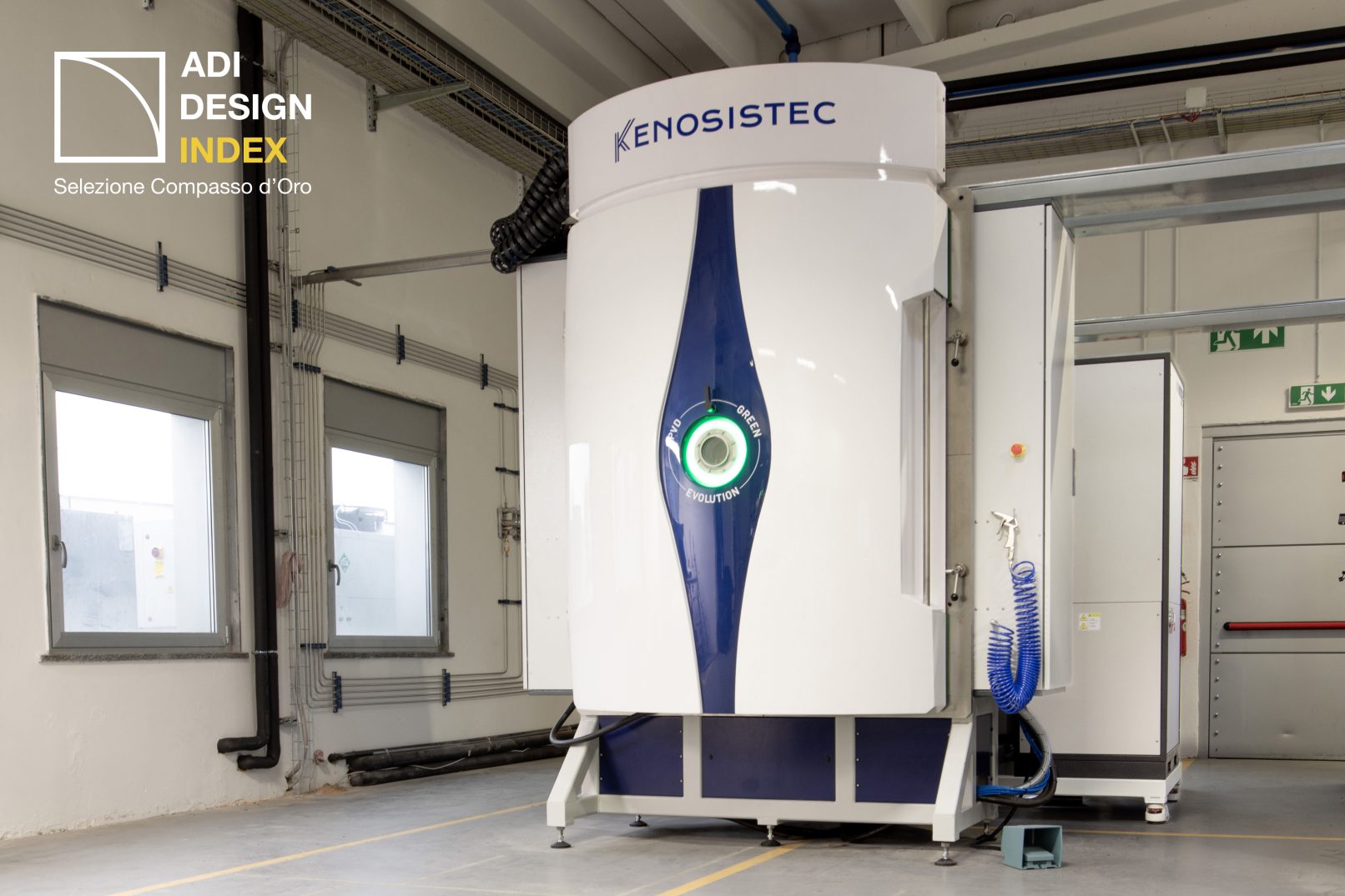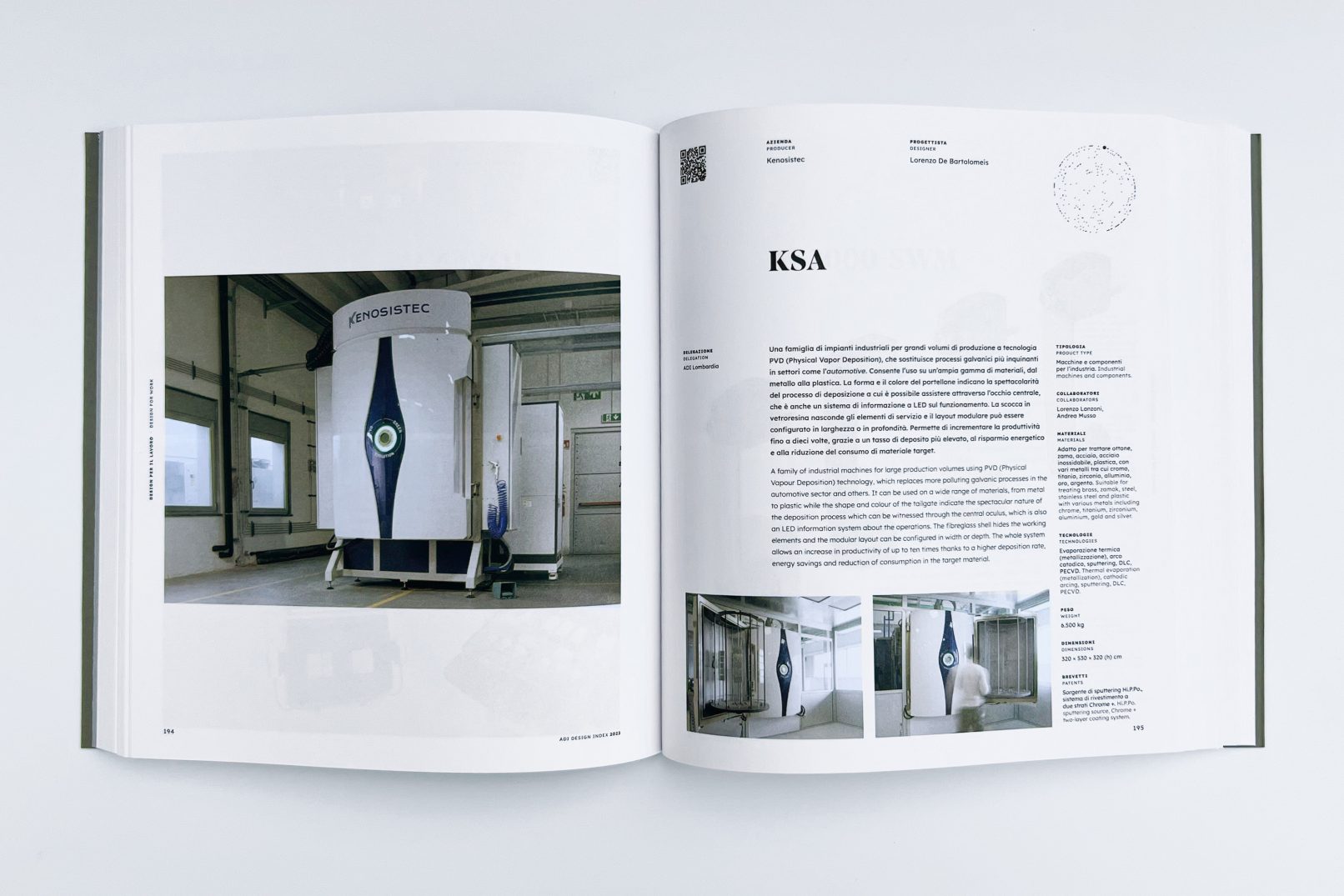 KSA is the new family of industrial PVD (physical vapor deposition) plants designed for large production volumes.The design is characterized by its strong iconicity and immediately understandable messages. The shape and color of the facade indicate the spectacular nature of the deposition process that can be witnessed, through the central eye. The ‘eye is also an rgb led light communication system that immediately transfers information about the operating status of the system: a blue breath indicates the process in progress, green when the system is ready to start the process, and red and orange indicate states of malfunction or operator intervention.The semantic cleanliness of the system, achieved through the fiberglass shell, also has the function of hiding all the service elements on the facade.